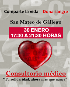 Donación de Sangre 30 de enero en el Consultorio Médico